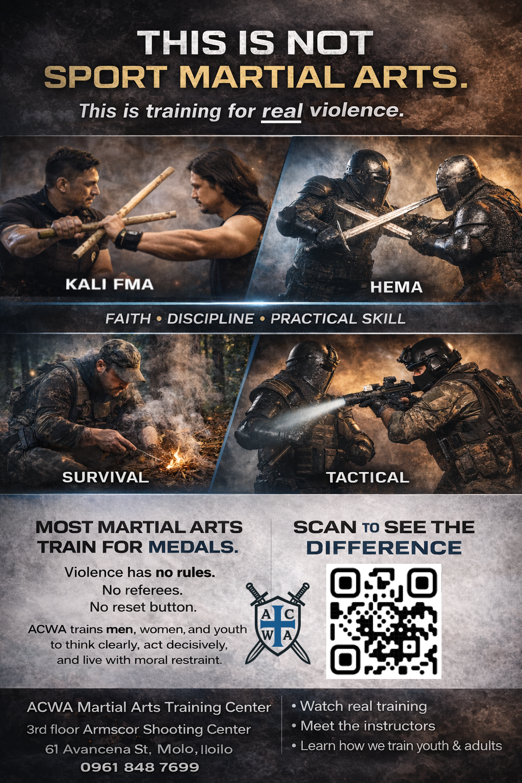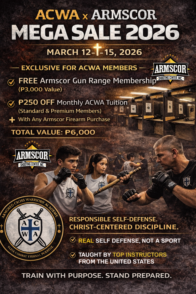 The ACWA (Armored Cross Warriors’ Academy) Martial Arts Training Center is a Christ-centered, combat-discipline training program. Founded by Dr. TJ Cuenca, a Christian warrior-shepherd, Punong Guro Filipino martial arts instructor, with nearly five decades of experience in the martial arts and trainer of elite special forces and law enforcement agencies from around the world, the ACWA trains modern Christian warriors to fight spiritual, mental and physical battles using biblical principles, martial arts, and real-world discipleship.